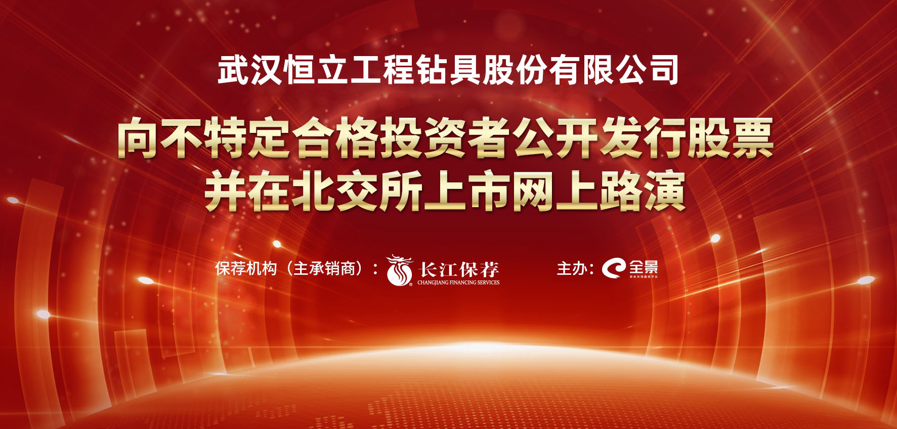 武汉恒立工程钻具股份有限公司向不特定合格投资者公开发行股票并在北京证券交易所上市的申请已经北京证券交易所上市委员会审核同意,并已获中国证券监督管理委员会(证监许可〔2022〕2582号文)批复同意注册,将于2022-11-25 15:00~17:00在全景路演举办,欢迎广大投资者踊跃参与!